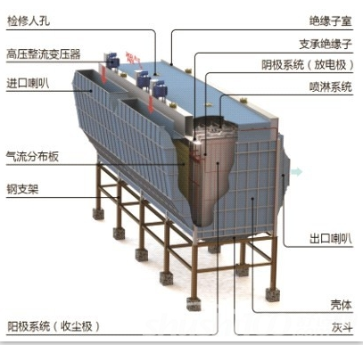 電除塵器的原理及過(guò)程:含塵氣體在通過(guò)高壓電場(chǎng)進(jìn)行電離過(guò)程中,使塵粒帶電,并在電場(chǎng)力的作用下,使塵粒沉積在集塵極上,將塵粒從含塵氣體中分離。整個(gè)除塵過(guò)程可劃分為四個(gè)階段:荷電、定向移動(dòng)、粘附和沖洗。