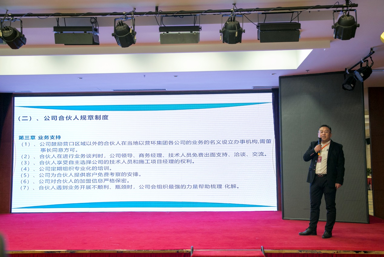 營(yíng)口市環(huán)境工程開發(fā)有限公司賈喜東商務(wù)副總做《如何輕松達(dá)到事業(yè)另一個(gè)頂峰》報(bào)告,報(bào)告中就如何尋找項(xiàng)目、如何提高項(xiàng)目成功率及如何跟蹤已簽約項(xiàng)目、讓老客戶再次購(gòu)買和轉(zhuǎn)介紹,進(jìn)行分析講解。
